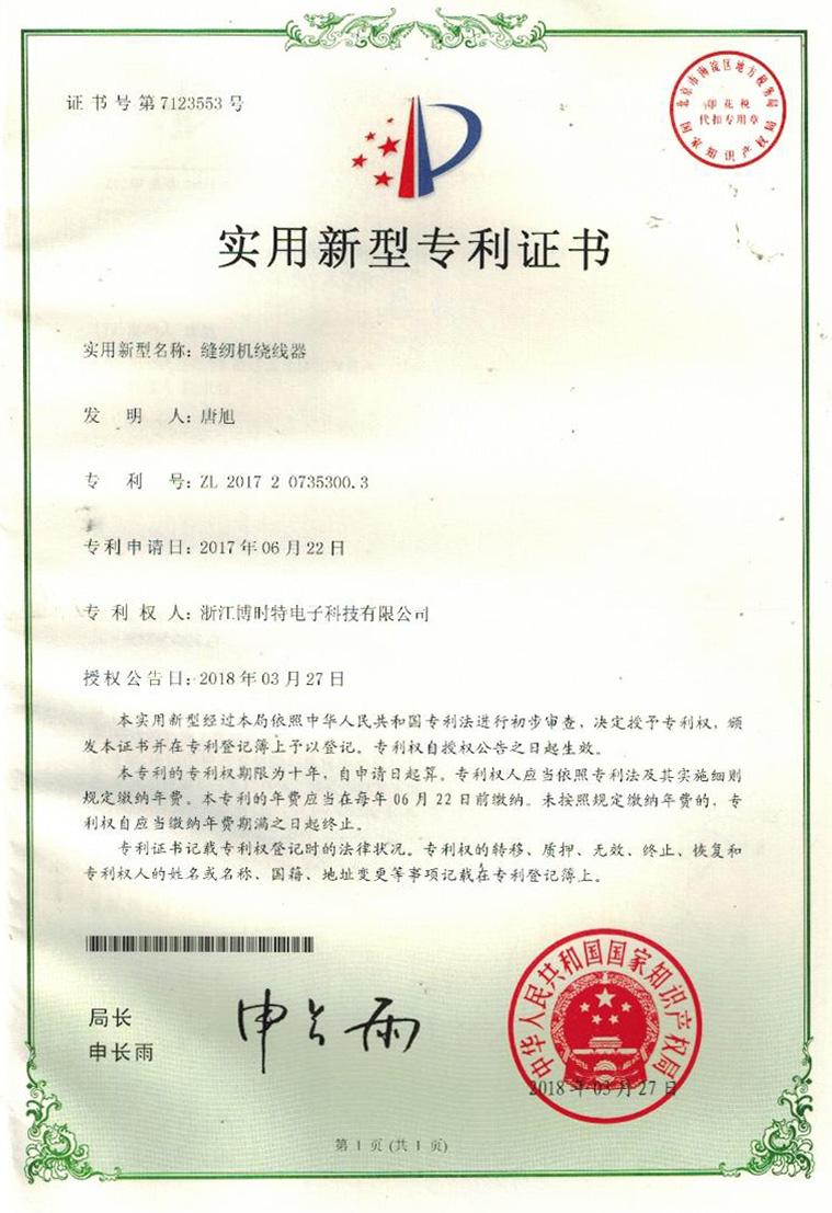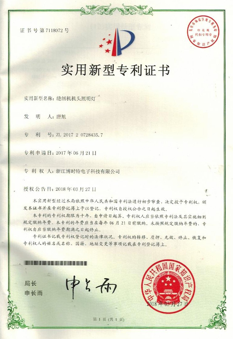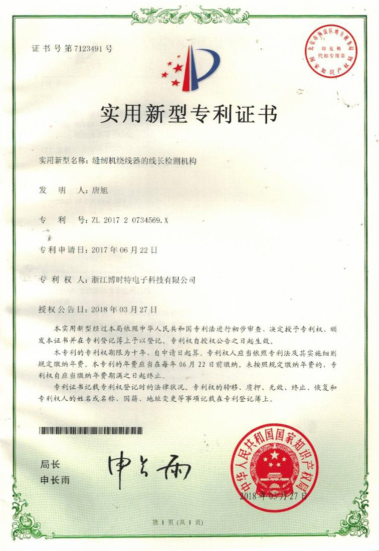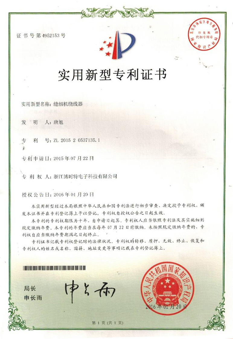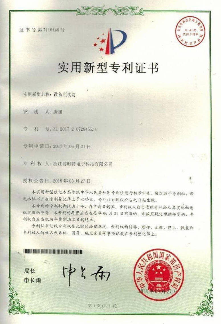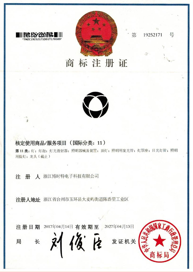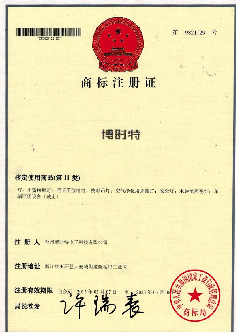 “博時特” 商標(biāo)注冊證