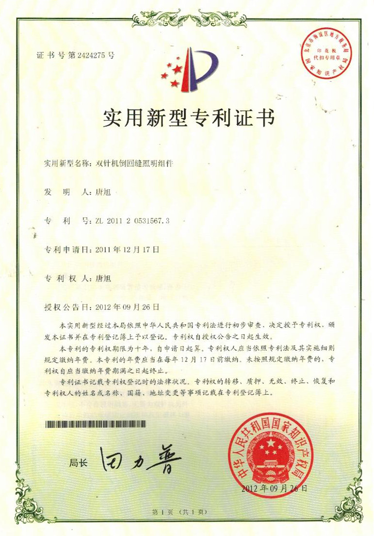 實用新型專利證書