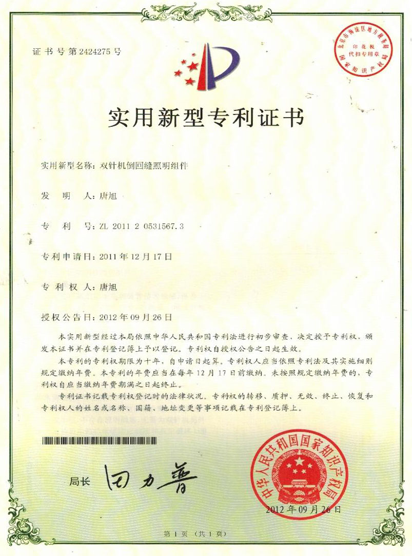 外觀設(shè)計專利證書